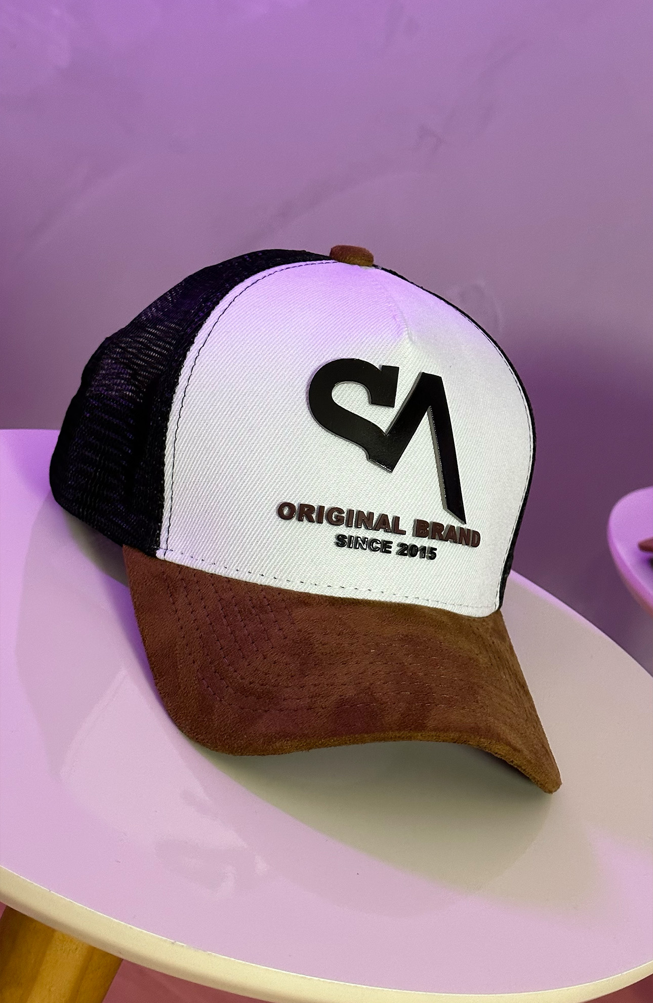 Boné com tela para maior ventilação, aba em material de camurça que adiciona um toque de sofisticação e fecho ajustável em plástico para um encaixe perfeito. Ideal para complementar looks casuais com personalidade.